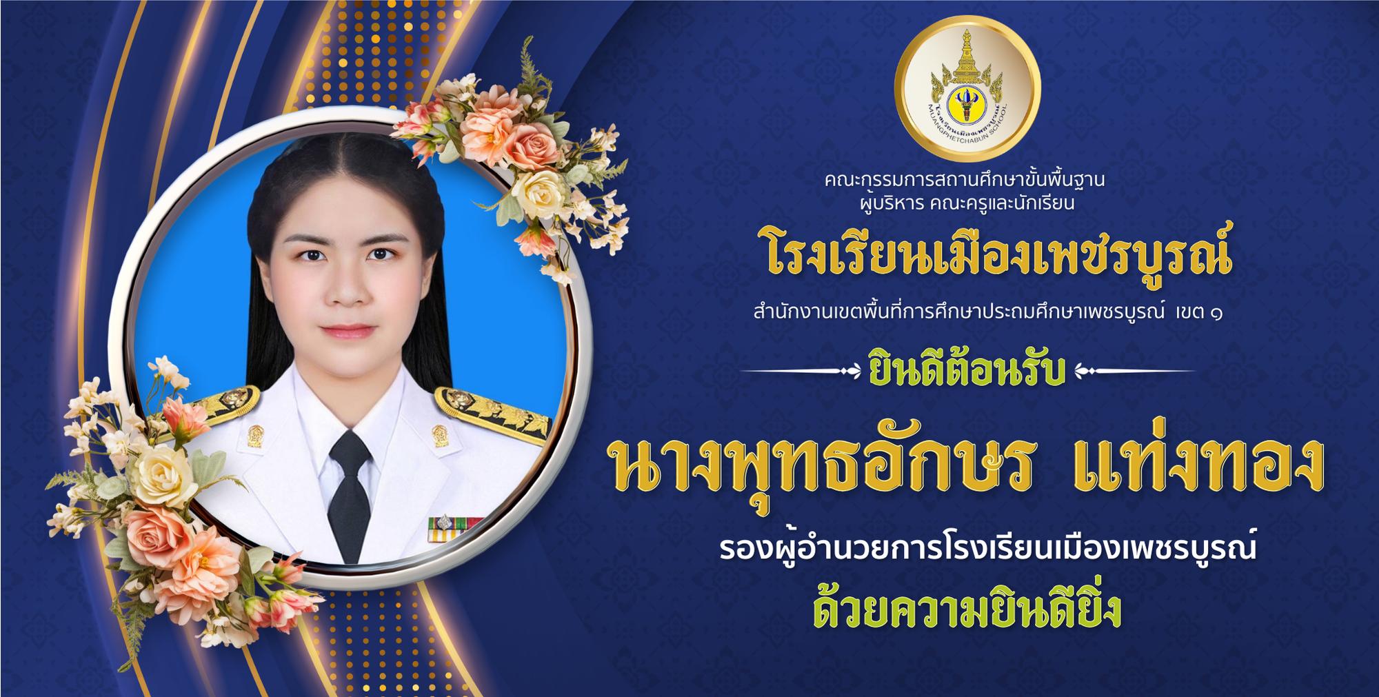 กิจกรรมต้อนรับ นางพุทธอักษร แท่งทอง เนื่องในโอกาสที่ได้รับการบรรจุและแต่งตั้งให้ดำรงตำแหน่ง รองผู้อำนวยการโรงเรียนเมืองเพชรบูรณ์